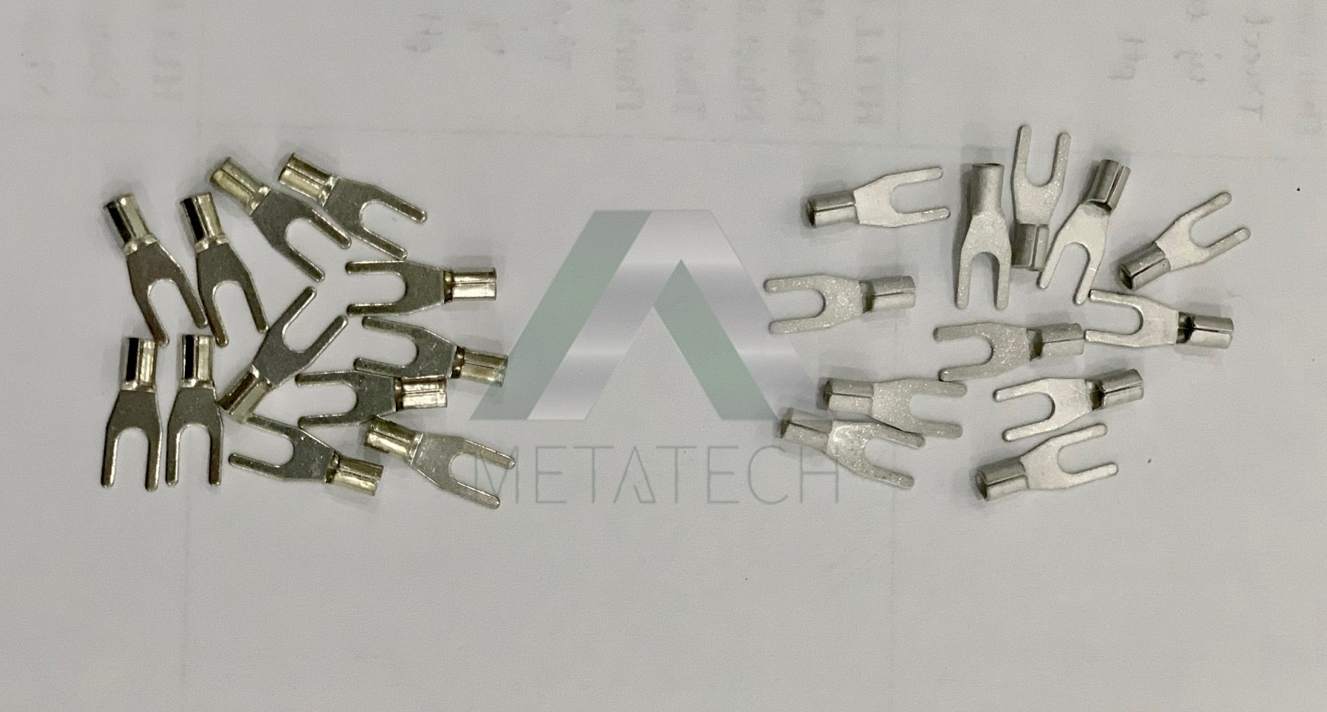 Dưới đây là một hình ảnh ví dụ. Ở bên trái là COLGLEAM SN thiếc bóng và bên phải là COLMATTE SN thiếc Mờ sử dụng phụ gia Metatech (xem thêm: https://metatech.vn/hoa-chat-ma-thiec)